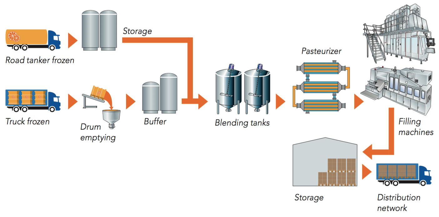 During raw material storage and handling, it is important to maintain conditions that prevent microbial growth in products. The quality of water used for concentrate reconstitution must be high. Water treatment methods aim to remove or destroy undesirable substances. Examples of these are organic matter, salts, chlorine and microorganisms.